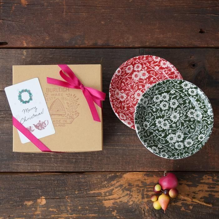 Burleigh ダークグリーン&レッドキャリコ フルーツプレート2枚セット E87972_E87RD88