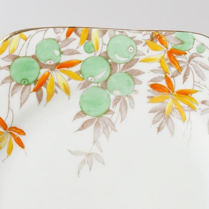 金彩は少し掠れた部分があります。またオレンジ色の釉薬が上からかかって色が変わっている部分があります。
