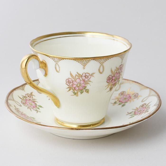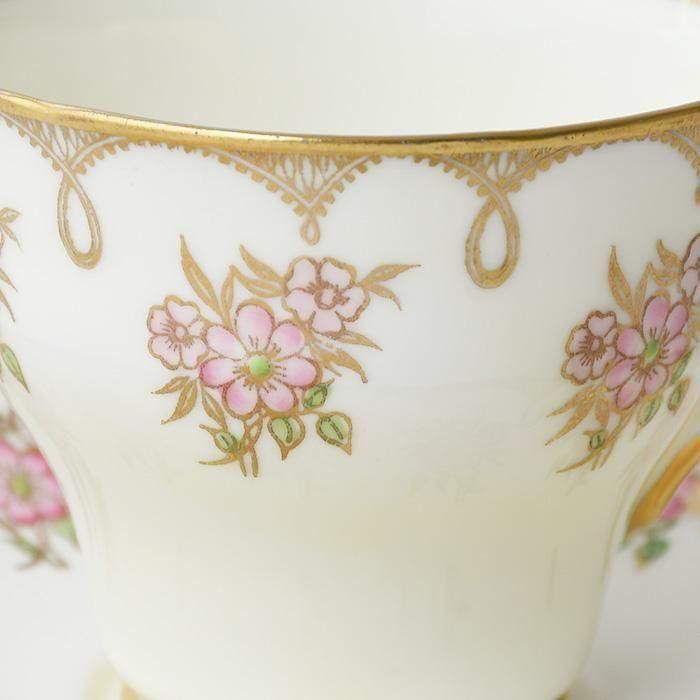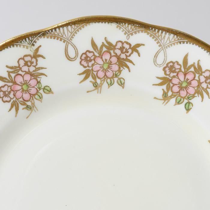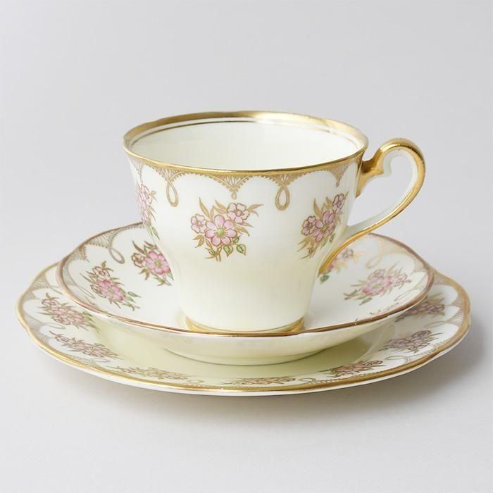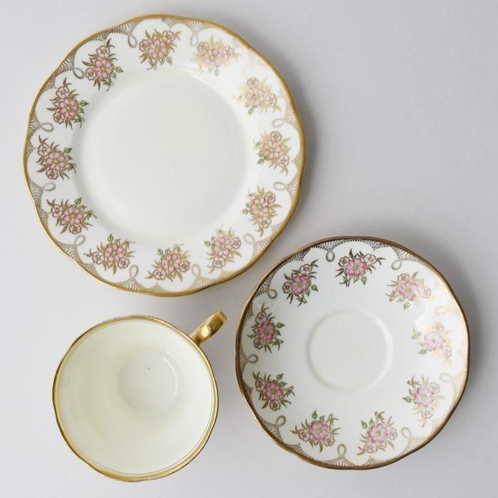 陶器の縁を金彩で飾り、花柄を手描きで入れたこのトリオは、古さを感じない美しさを