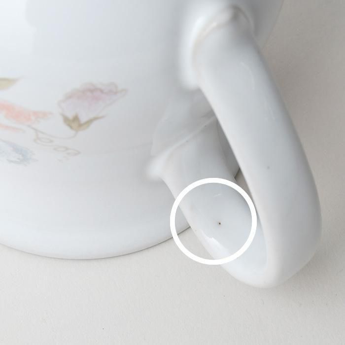 青みがかった白い地に、淡い色彩でスイートピーを描いたデザインは、1982年に発売された"DAUPHINE"シリーズと同じものです。製造途中でシェイプを変更した時に、シリーズ名も新しくしたようです。