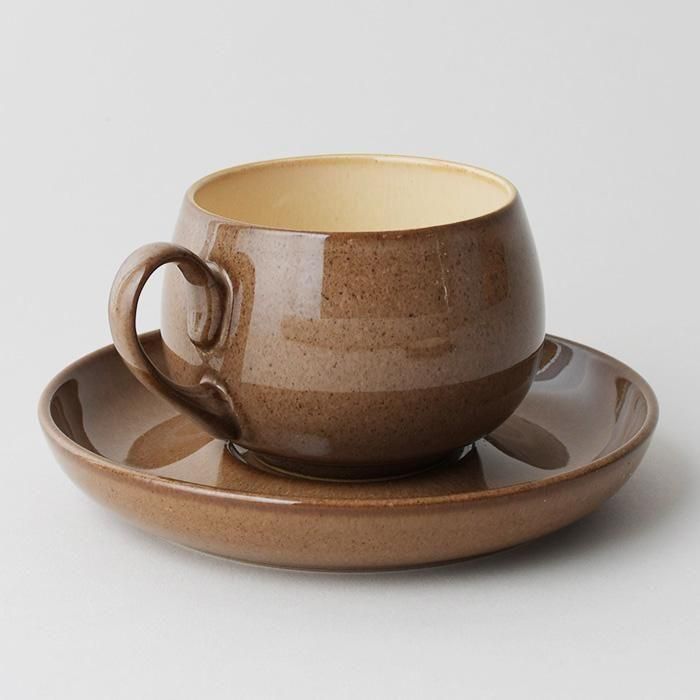 現行のシリーズに似た丸みを帯びた優雅な形状と、柔らかなブラウンが特徴で、カップの内側は赤みのあるクリーム色になっています。